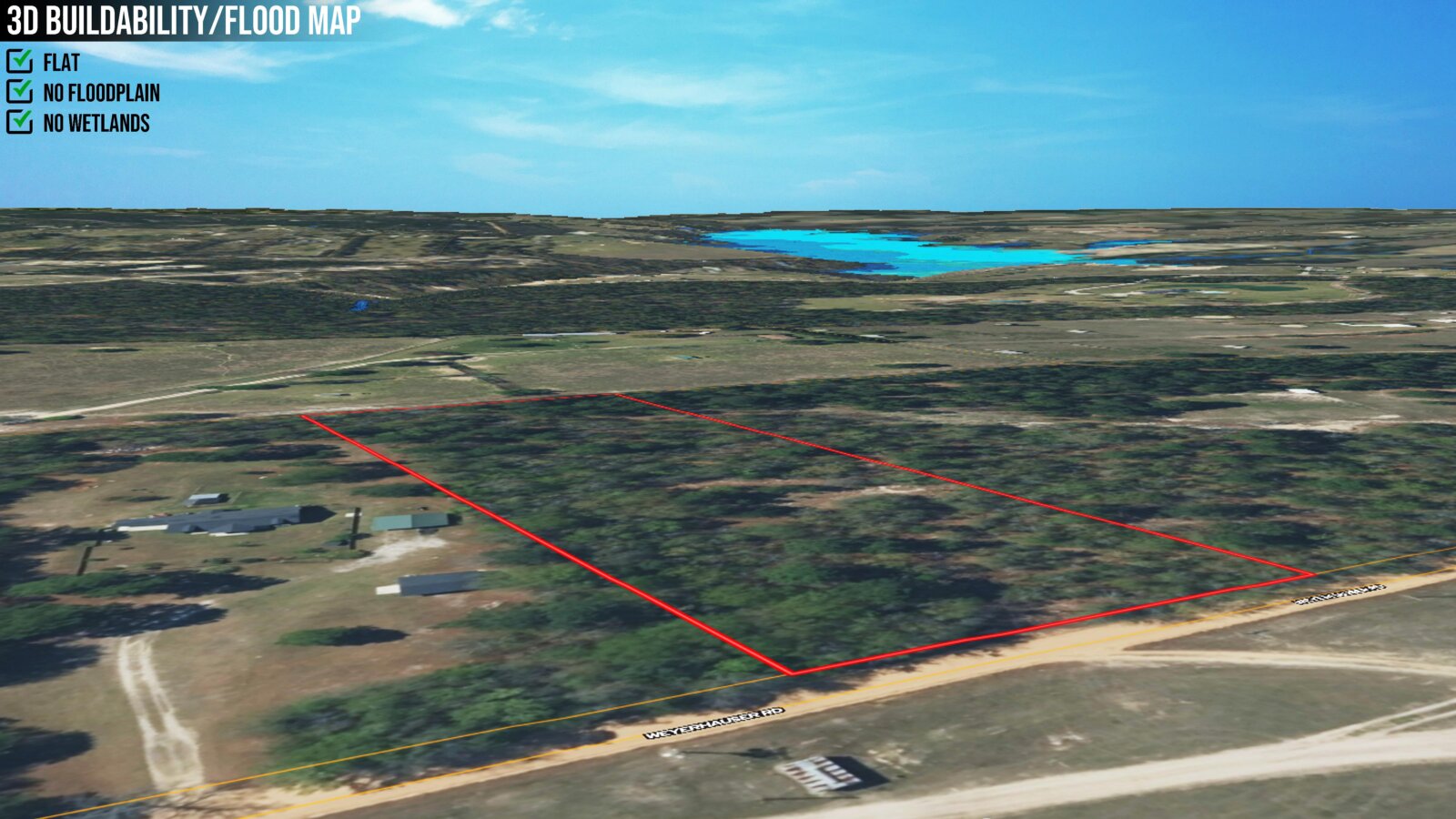 - Very Buildable: Flat, No Floodplain or Wetlands, Clearing
