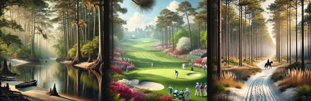 Outdoor enthusiasts will find plenty to explore around Aiken, with highlights like Hitchcock Woods, one of the largest urban forests in the country, offering over 70 miles of scenic equestrian and hiking trails beneath towering longleaf pines. If you want something a little closer, Aiken State Park and Cabin Lake is just 7 minutes down the road, an ideal spot for kayaking, fishing, bird watching, cycling, or enjoying a picnic along the shoreline. Just south of Aiken, Langley Pond Park is a favorite for water sports and local rowing events, with sandy beaches and wooded trails framing its calm waters. The nearest town for groceries and everyday shopping is Aiken, which also hosts the nearest Walmart, while the nearest major city—Augusta, Georgia—offers additional dining, entertainment, and cultural attractions and hosts the The Masters, one of the world’s most famous golf tournaments.
