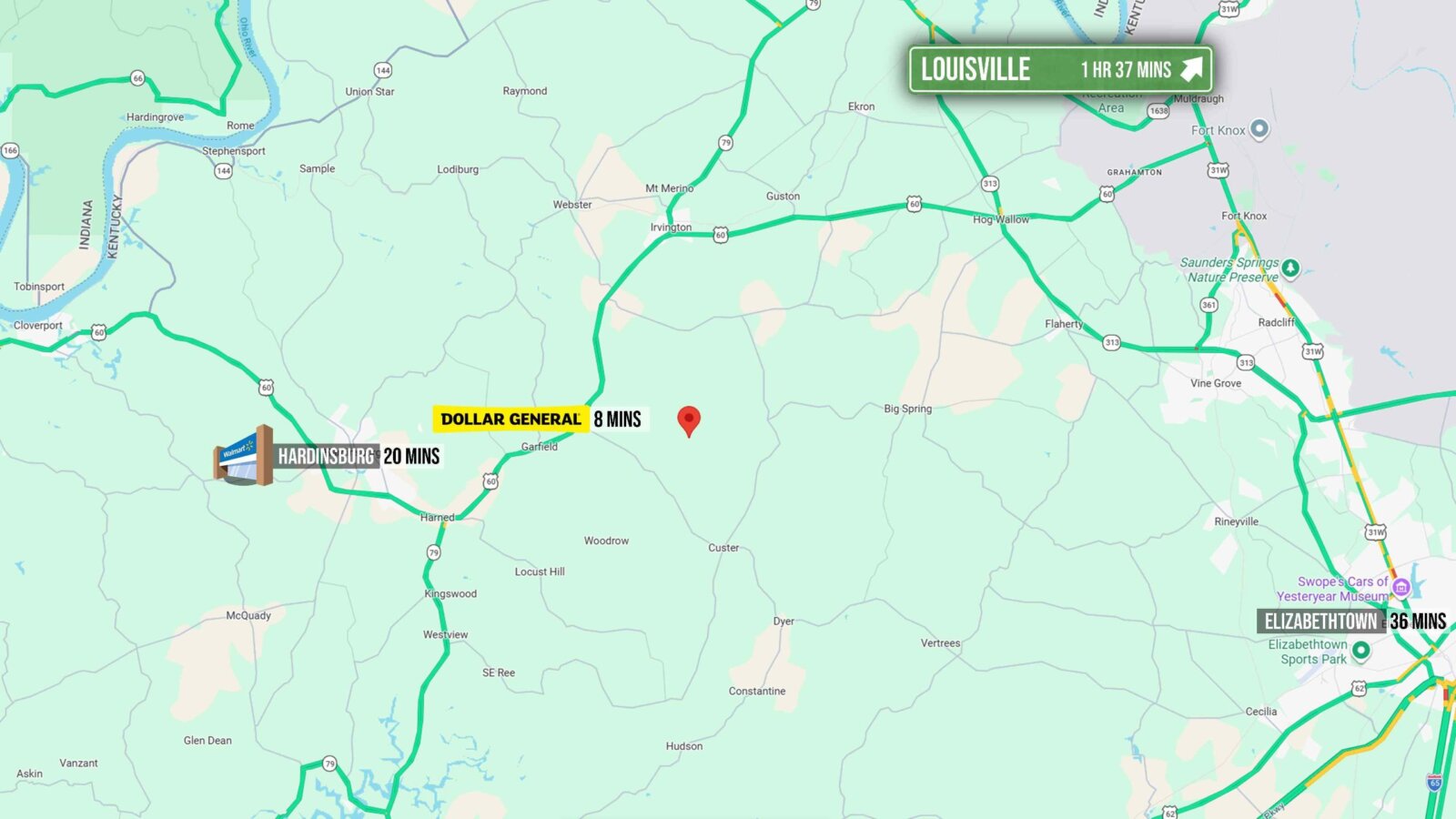 - NEAREST AIRPORTS: Breckinridge County Airport (21 mins), Louisville International (1 hr 1 min)