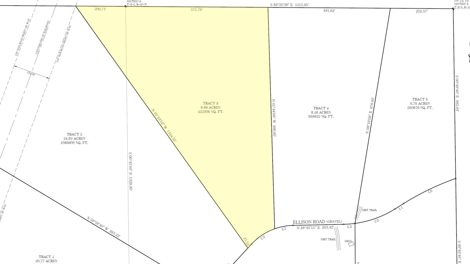 - PLAT MAP/SURVEY: view survey here (get Tract 3 boundary/KMZ file here – opens in Google Earth)