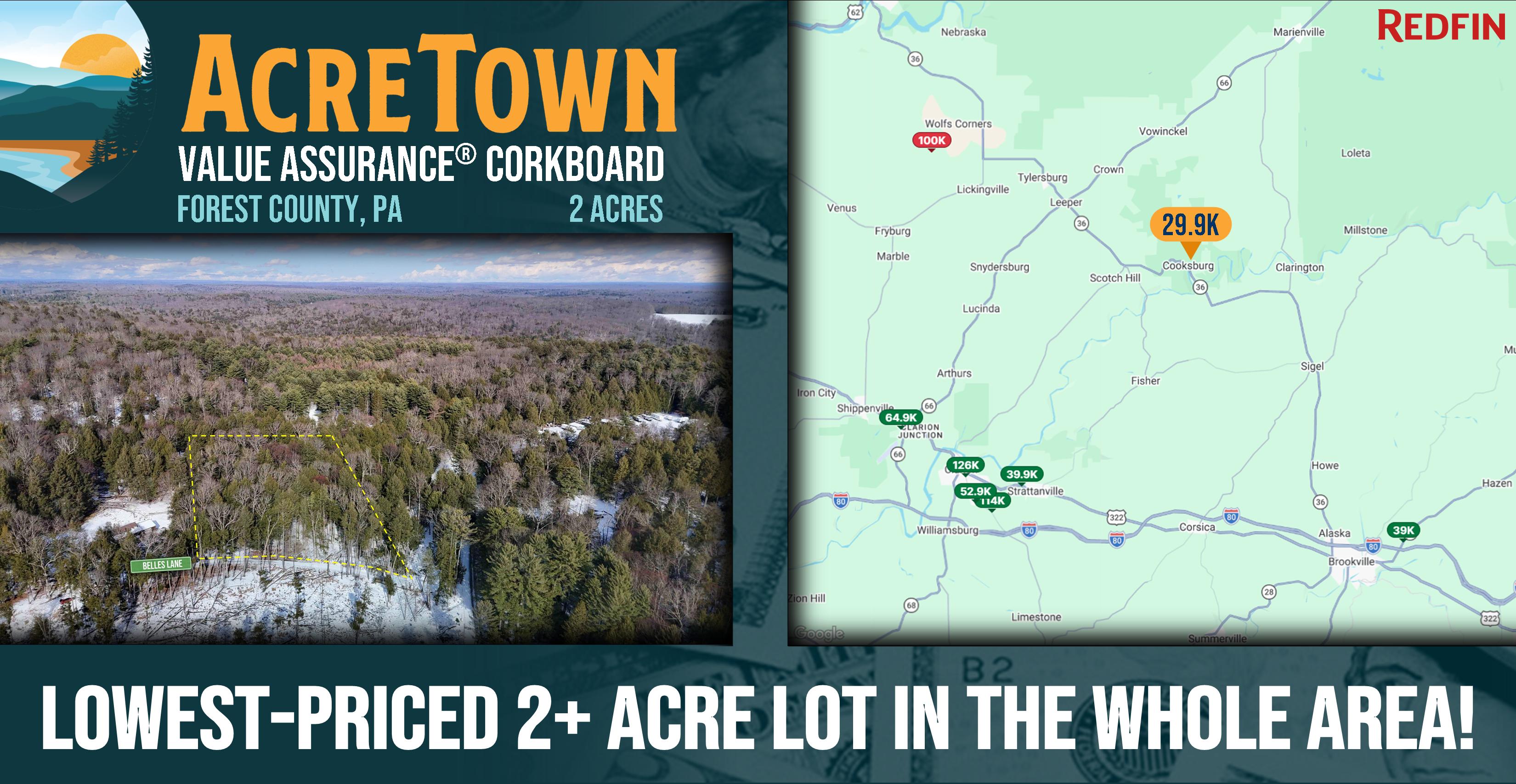 PROPERTY: This 2 acre wooded parcel just a few mintues from Cooksburg offers a very buildable, moderately flat setting with no floodplain or wetlands, making it ideal for residential, recreational, or investment use with no zoning and absolutely no restrictions. The property features 237 feet of public road frontage on Belles Lane, power available along the road frontage, and ample space for a home, cabin, RV, mobile home, tiny home, or campsite, with well and septic needed. This offering is actually comprised of two lots so you don’t just have freedome of use, but also freedom in your investment to develop, hold, or split one lot off for sale at a later date. No subdividing is necessary because it’s already been done for you! Located just minutes from the Clarion River, Cook Forest State Park, and the North Country National Scenic Trail, this land puts hiking, fishing, hunting, and kayaking right at your doorstep, with abundant deer and wildlife throughout the area. The lot carries cheap annual taxes of only $105 and sits in a quiet, safe, rural neighborhood surrounded by public lands and outdoor attractions, all while being priced well below market for the area—an exceptional opportunity with no HOA, no deed restrictions, and maximum flexibility. Grab it today at an unbeatable Acretown price!