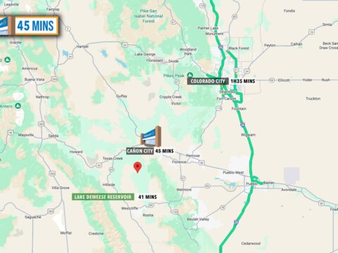 NEARBY – Deer Mountain (27 mins), Texas Creek OHV Area (31 mins), Pinnacle Rock (36 mins), Lake Creek Campground (37 mins), Harvey Brothers Reservoir (38 mins), Royal Gorge Bridge & Park (39 mins), Lake DeWeese (41 mins), Rainbow Lakes Trailhead (43 mins), Duckett Creek Trail Head (43 mins), South Twin Mountain (47 mins), and more!