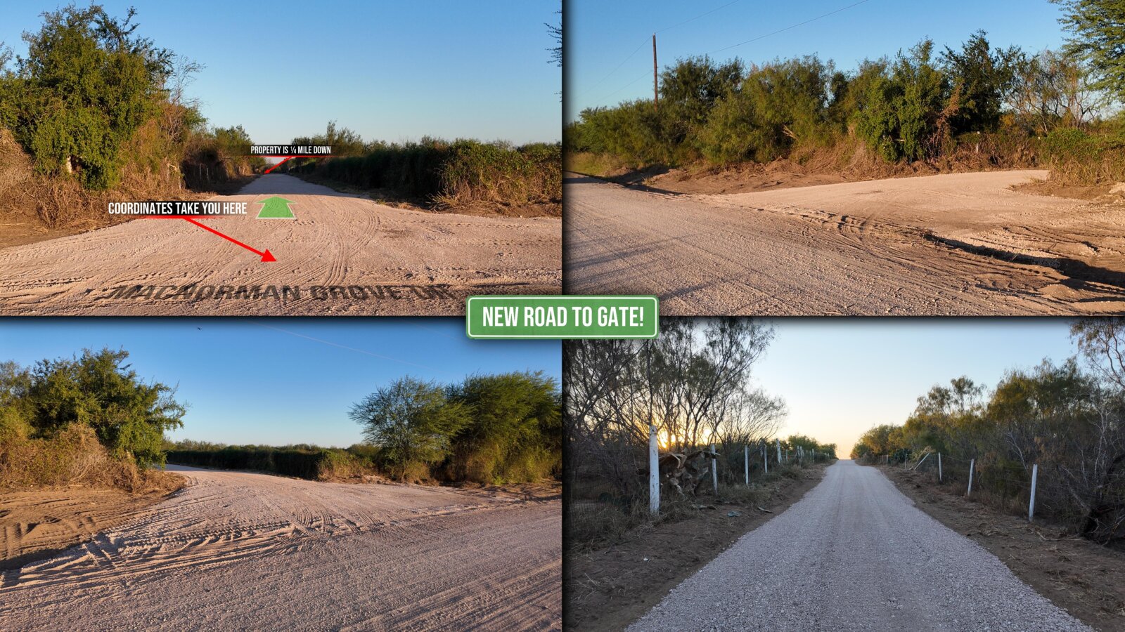 DRIVING DIRECTIONS: The ranch road turn-off from Macnorman Grove Drive is located precisely at GPS coordinates 26.459438, -98.262832. You’ll drive exactly a quarter-mile down that dirt road and then you will see the gate to our property on the left (north) side of the road.