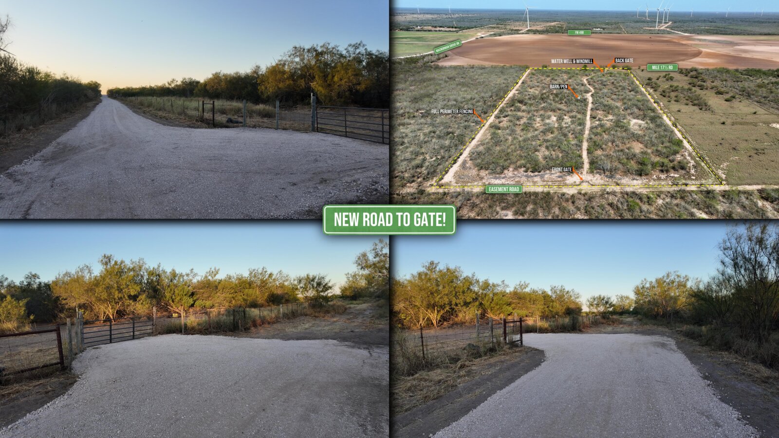 - ACCESS: gate fronts a newly built gravel road (deeded access) that leads to FM 490, a paved public road