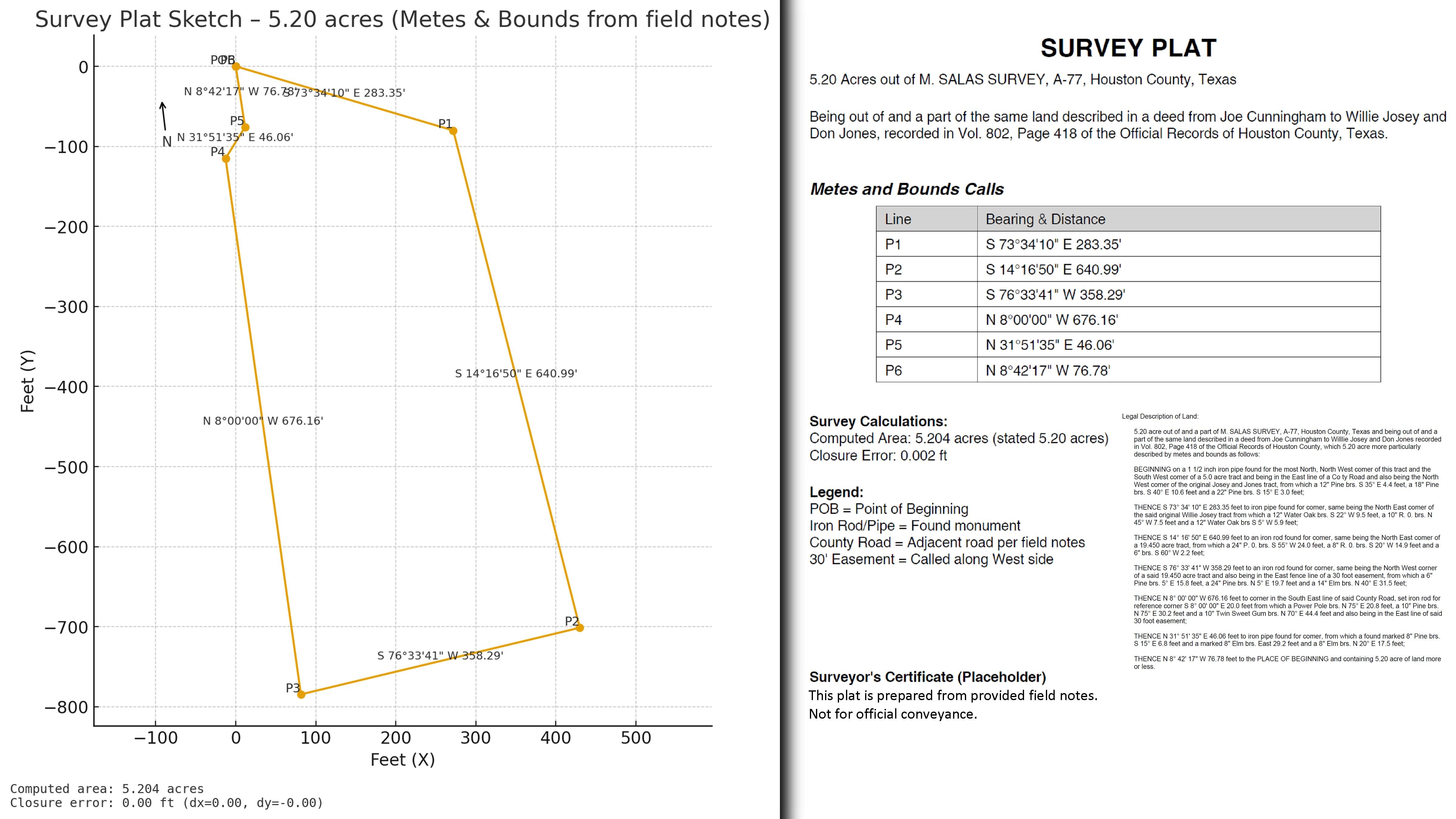 - DIMENSIONS (approximate): starting at NW corner, 283′ SE x 641′ S x 358′ SW x 676′ N (along easement road) x 46′ NE (along county road) x 77′ N (along county road) to POB