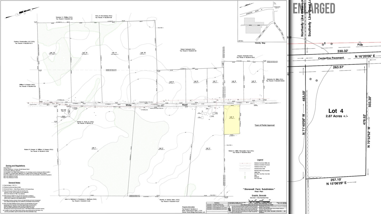 Welcome to Stonewall Farm! Lot 4: This new and peaceful 2.87 acre property near Parish, in upstate New York, lies just minutes from Lake Ontario’s endless recreational opportunities. This flat, perc-approved lot features a large clearing sandwiched between a grove of mature trees and the signature stonewalls that inspired this subdivision’s name, offering a perfect blend of privacy, build readiness, and natural beauty. With 264 feet of paved public road frontage on White Road, access is simple, while a well and septic (perc-approved) can be installed to suit your build. Free from HOAs and restrictive covenants, this property is zoned Rural/Mixed Use—perfectly flexible for residential or recreational living, with mobile/manufactured homes and even some commercial uses allowed. Recently surveyed and free of any floodplain and wetlands encroachments, it’s very buildable and surrounded by a safe, quiet neighborhood. Along parts of all three sides off the road, you can’t ask for a more charming fenceline than these old stonewalls. Just 3 minutes from town and within 20 minutes of multiple lakes, waterfalls, state forests, and wildlife areas, this charming location makes for an ideal countryside estate. Owner financing is available too, so grab it today at an unbeatable Acretown price!