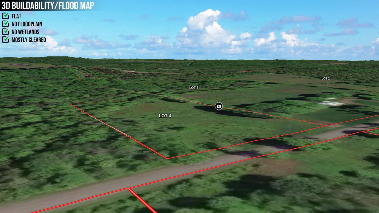- Easily Buildable: Flat, Mostly Cleared, No Floodplain, No Wetlands