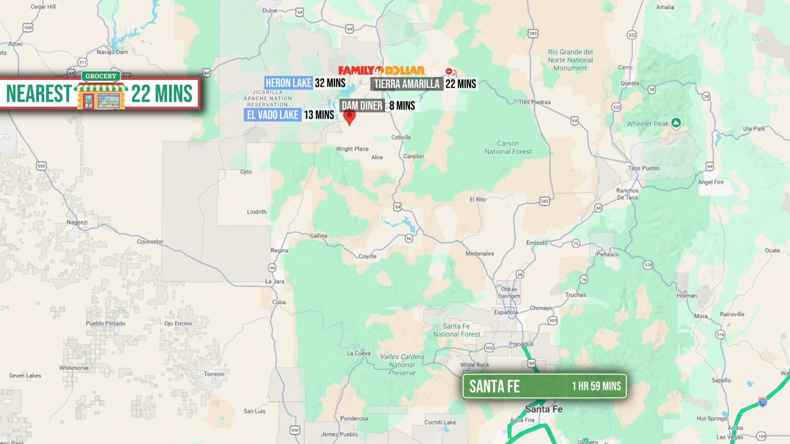 TIERRA AMARILLA (22 mins, nearest grocery store – Family Dollar)