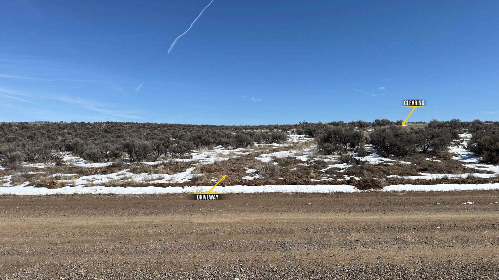 - CONDITION: cleared driveway and homesite, light brush, young trees (juniper and ponderosa pines recently planted)