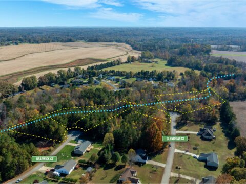 PROPERTY: Discover the perfect blend of tranquility and convenience from these 6 different lots totalling 3.49 acres located around two different cul-de-sacs near Salisbury, North Carolina. With paved road frontage on Bearwick Court (the east cul-de-sac) and Glenbriar Court (the west cul-de-sac), this flat-to-gently sloping property offers easy access. We’ve massively reduced the price (from an original asking price of $25k per lot) due to challenges with septic installation, as a soil study concluded that an alternative system would have to be designed and installed here – not suitable for traditional septic. Solve this challenge and you’ll reap enormous returns on your investment! Or, don’t solve that challenge and simply sell these lots individually to neighboring landowners who are looking to expand the size and value of their estate at a fraction for what they’ll get in return, so it’s a great investment for them too! Power is available in the neighborhood via Duke Energy, and you’re free from floodplain concerns. Enjoy the serenity of a seasonal creek along the back boundary and the freedom of light restrictions—modular homes are welcome on permanent foundations. Low annual taxes add to the appeal, making this an exceptional opportunity to embrace country privacy without sacrificing city proximity. Grab this excellent investment opportunity today at an unbeatable Acretown price!