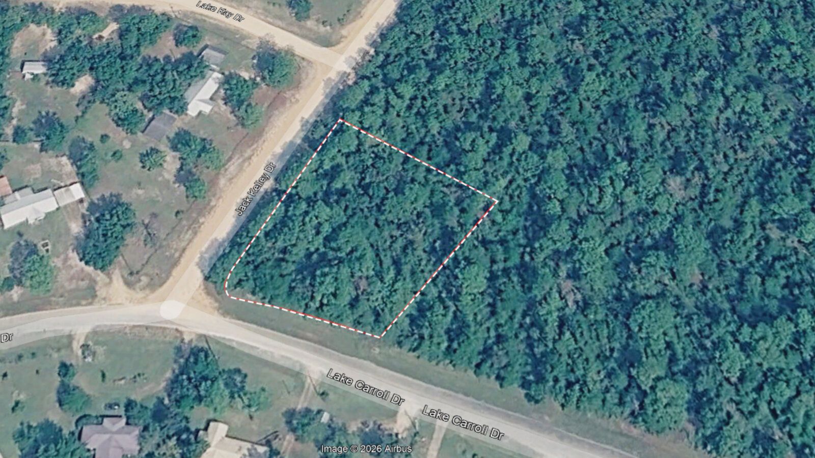 • ACCESS: 173 feet of direct frontage of Lake Carroll Drive (paved) + 251 feet of direct frontage on Jack Kelley Drive (gravel)