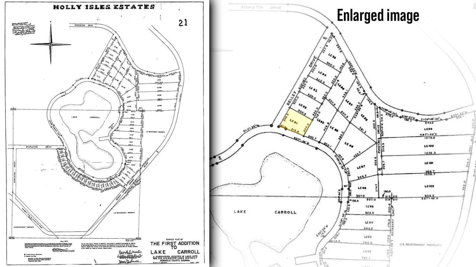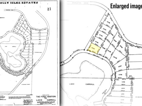 • DIMENSIONS (approximate): starting at SW corner (intersection) 251′ NE (along Jack Kelley Dr) x 205′ SE x 200′ SW x 173′ W (along Lake Carroll Dr) to POB