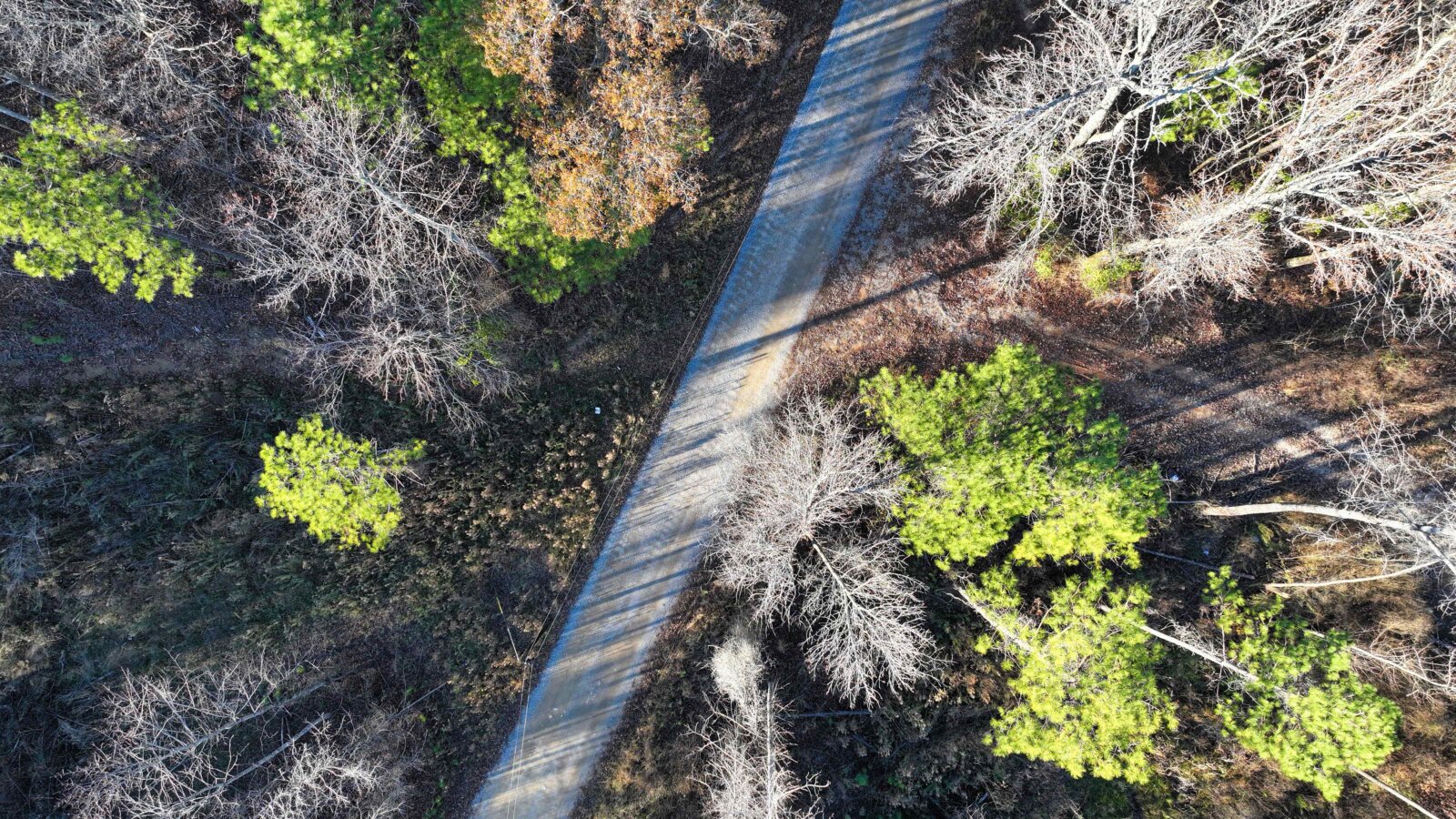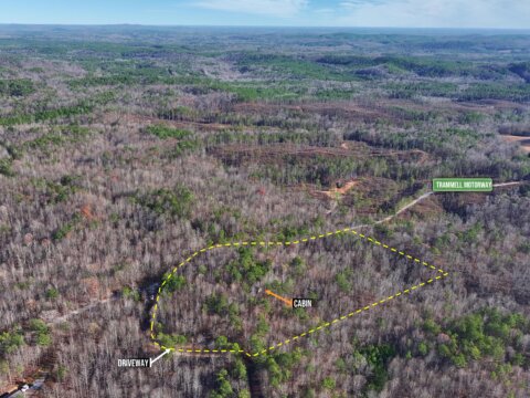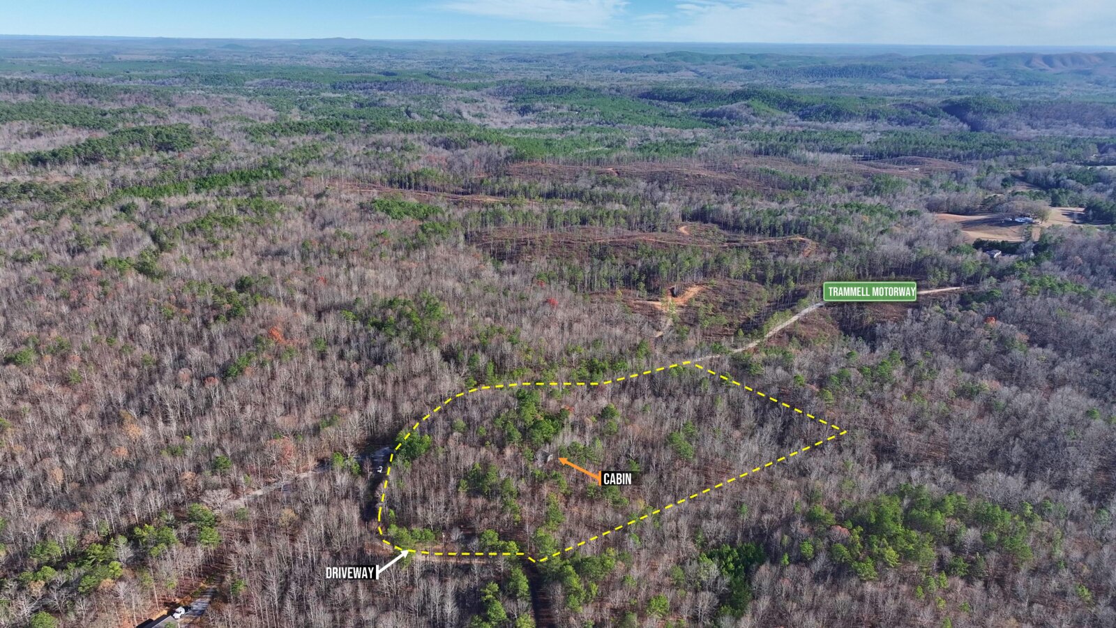 - ACCESS: 795 feet of direct frontage on Trammell Motorway, a public gravel road + 468 feet of direct frontage on county road to north (where driveway connects)