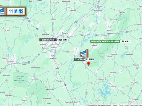 - NEAREST AIRPORTS: Sylacauga Municipal (18 mins), Birmingham International (1 hr 20 mins)