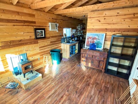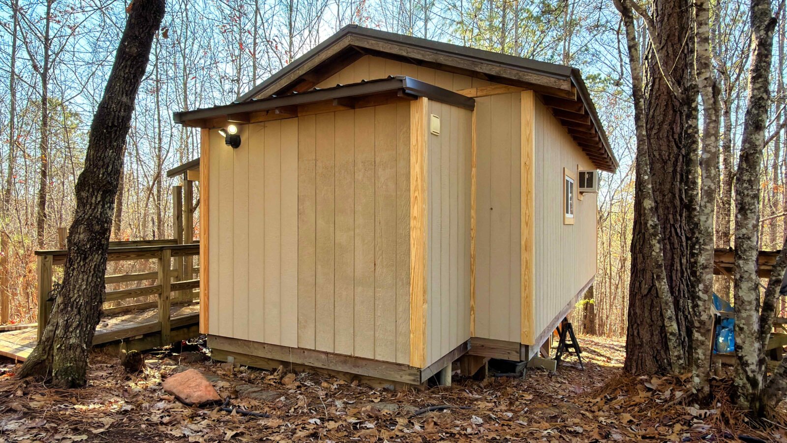 This cozy 320 sq. ft. cabin, built in 2013, sits on 7.73 acres with underground utilities – well, propane, and a 50-amp RV hookup. Surrounded by abundant wildlife, it’s the perfect hunting base camp—just bring your gear and step outsideinto the woods. Enjoy a rustic one-room living/bedroom with tongue-and-groove wood throughout, a full kitchen with stainless appliances, tiled shower,and huge walk-in pantry. Relax on the full-length covered porch after a day in the field. Convenient to Sylacauga and close to the Pinhoti Trail, this is the ideal spot for hunters, campers, or anyone looking for a getaway in the heart of Alabama’s outdoors. – Realtor Cristie Hope