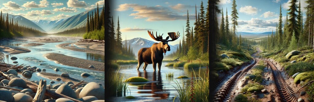 Just outside Tok, you’ll find a handful of easy-to-reach outdoor spots that make it simple to get outside and enjoy Alaska’s wide-open scenery—Rodgers Pond is a peaceful place for a quick walk, wildlife viewing, and a relaxing afternoon by the water, while Eagle Trail State Recreation Site offers classic Interior Alaska forest trails that are great for hiking, stretching your legs, and soaking up the quiet backcountry feel. Hunters will enjoy being surrounded by abundant wildlife in the surrounding mountains, and there are three main rivers here that offer excellent opportunities for anglers. The quickest good fishing hole is just 12 minutes away in the Tok River at the Tok River State Recreation Site. For a bigger water-and-views adventure, the Tanana River is a scenic powerhouse and a favorite for fishermen, photographers, boaters, and anyone who loves big river landscapes. Bicylcists and ATVers can take advantage of the trails along side Glenn Highway just about a half mile away. For groceries and everyday supplies, drive 7 minutes up that highway to the charming town of Tok, offering a couple different restaurants, convenience stores, food trucks, hardware store, two outfitters, a couple motels/BnB’s, and a few laundromats.